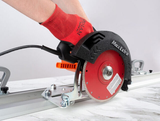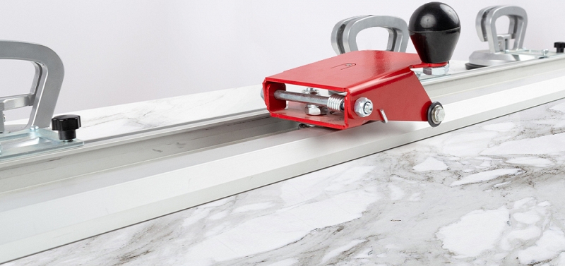 - За счет применения вакуумных присосок система жестко фиксирует положение направляющей на плите