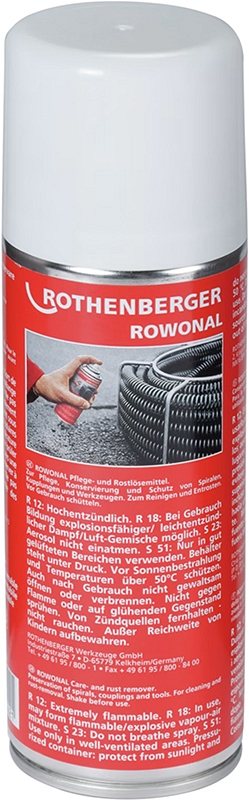 Средство для ухода за прочистным инструментом Rothenberger Rowonal 200 мл (Ротенбергер Ровонал 200 мл) предназначено для чистки, устранения ржавчины, дезинфекции, ухода за прочистными спиралями, муфтами и инструментом.