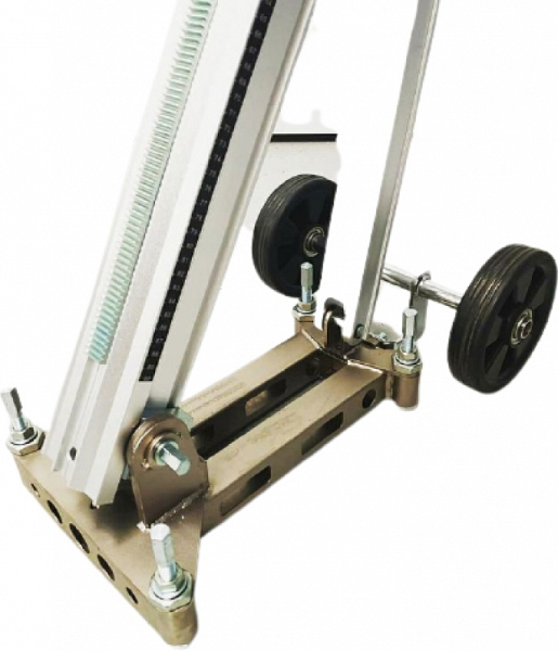 Станина для алмазного бурения Bycon DSP-352 (Байкон ДСП-352) – профессиональная, удобная, легкая, компактная, устойчивая и надежная стойка c прочным стальным основанием для анкерного крепления, транспортировочными колесами, быстросъемным креплением двигателя для корончатого колонкового сверления отверстий Ø до 352 мм в бетоне, железобетоне и Ø до 402 мм в кирпиче с использованием двигателей для алмазного бурения с пластиной крепления на 4 болта. Оптимальный алмазный штатив идеально подходит для сантехнических и электрических работ, гражданского строительства и ландшафтных работ, для тяжелых режимов работ.