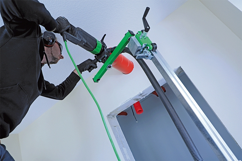 Станина для алмазного бурения Eibenstock EBW 1300 (Айбеншток ЕБВ 1300) с зажимным приспособлением для шейки Ø 60 мм предназначена для сверления отверстий алмазными корончатыми сверлами и бурами различных производителей с использованием дрелей и перфораторов при прокладке сантехнических систем водоснабжения, отопления, вентиляции и канализации, в электрике, строительстве зданий, компаниях по аренде буровых машин.