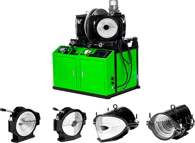 - Функциональные возможности: работает с полипропиленовыми (ПП), полиэтиленовыми (ПЭ), поливинилденфторидными (ПВДФ) трубами с наружным Ø 90 – 315 мм, производит отводы, тройники и крестовины.