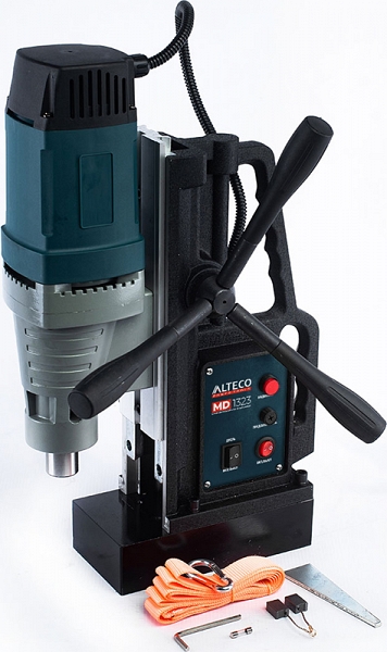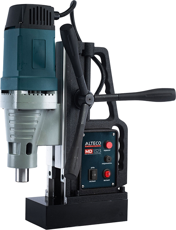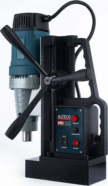 Станок сверлильный с магнитной стойкой Alteco MD 1323 (Альтеко МД 1323) – надежный магнитный сверлильный станок на магнитном основании для сверления отверстий Ø до 68 мм корончатыми сверлами и Ø до 23 мм спиральными сверлами в различных материалах. Отличается компактными габаритами и отлично подойдет для небольшого производства или мастерской.
