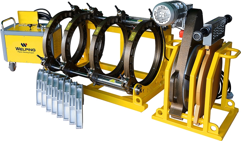 Стыковой сварочный аппарат Welping WP500A (Велпинг ВП500А) – полуавтоматическая электрогидравлическая стыковая сварочная машина для сварки пластиковых (ПЭ (полиэтиленовых), ПП (полипропиленовых), ПВДФ (поливинилиденфторидовых) / PE, PP, PVDF) труб Ø 280, 315, 355, 400, 450, 500 мм на стройплощадках, в полевых условиях и цехах при прокладке дренажных труб и водопроводных магистралей.