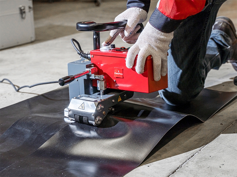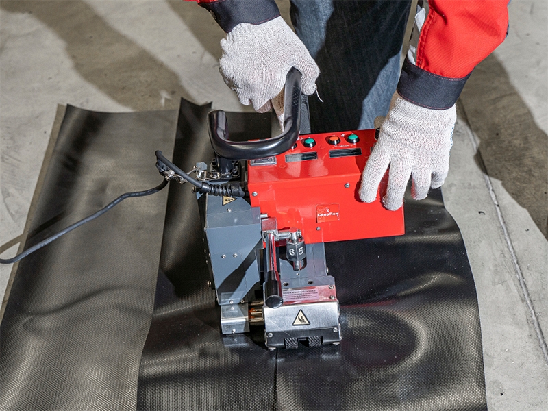 Сварочный автомат горячего клина СварПом СП31 (SvarPom SP31) – автоматический сварочный аппарат горячего клина для высокопроизводительной сварки внахлест горячим клином полимерных гидроизолирующих покрытий и геомембран толщиной 1,0 – 3,0 мм, изготовленных из таких материалов, как ПЭНД, ПЭВД, ПП, ТПО и ПВХ (для сварки гидроизолирующей ПВХ мембраны, медный горячий клин легко меняется на стальной), при строительстве подземных и гидросооружений.