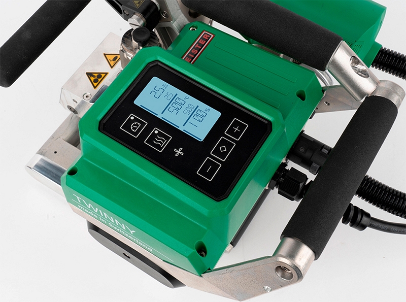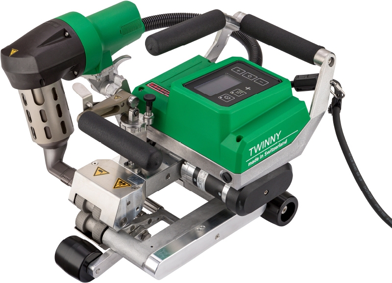 Сварочный автомат горячего воздуха с комбинированным клином Leister Twinny T5 (Ляйстер Твинни Т5) – полностью обновленный, универсальный, более мощный и быстрый сварочный аппарат серии Twinny с цифровым интерфейсом для сварки как тонких, так и толстых мембран и гидроизоляционных материалов, толщиной 0,3 – 2,5 мм. Используется для сварки внахлест гидроизолирующих покрытий и геомембран при строительстве полигонов ТБО, свалок, шламохранилищ, гидростроительстве, строительстве искусственных водоемов и бассейнов, водохранилищ, гидроизоляции при озеленении кровель, промышленных объектов, отстойников, накопителей, фундаментов, подземных городков, резервуаров и т.д.