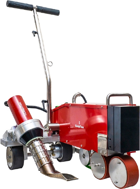 Сварочный автомат горячего воздуха СварПом СП41 40 мм 380 В (SvarPom SP41 40 mm 380 V) – автоматический сварочный аппарат горячего воздуха нового поколения для эффективной сварки внахлест горячим воздухом рулонных полимерных кровельных покрытий и гидроизолирующих мембран из ПВХ, ТПО, синтетического каучука и других гидроизолирующих полимерных кровельных материалов, может быть применен на объектах, где запрещено использование открытого пламени.