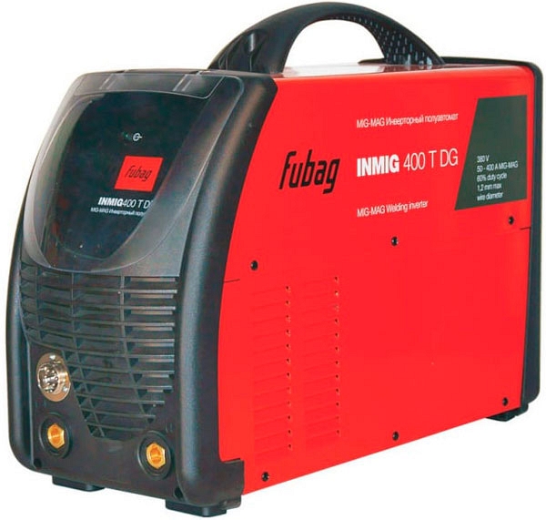 Сварочный полуавтомат инвертор Fubag INMIG 400 T DG (Фубаг ИНМИГ 400 Т ДГ) самый мощный трехфазный аппарат для сварки металла по методу MIG/MAG (сварка электродной проволокой в среде защитного газа). Предназначен для выполнения сложных и длительных работ по высококачественной сварке. Устройство комплектуется выносным 4-х роликовым механизмом подачи проволоки, что позволяет оператору работать на расстоянии от основного агрегата.