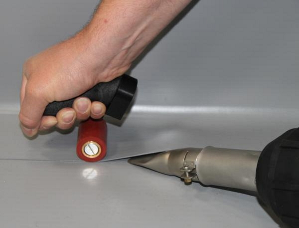 Тефлоновый прижимной ролик на подшипнике Herz 40 мм (Герц 40 мм) – прикаточный валик шириной 40 мм, предназначенный для прикатки тентовых и баннерных тканей, полимерных пленок, геомембран, гидроизоляции во время сварки аппаратами горячего воздуха.