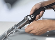 – Сшивка или прихватка конструкционных деталей без применения присадочного материала. Применяется для фиксации деталей перед сваркой с помощью сварочного прутка или перед экструзионной сваркой. Необходимые для этого принадлежности: круглое сопло Ø 5 мм (артикул F4000) или резьбовой адаптер (артикул F4007), сопла для расшивки (артикул F5015 или F5004)