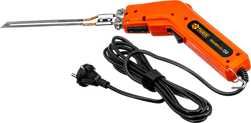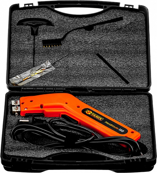 Термонож Stanix HotBlade 150 (ХотБлейд 150) – электронож с прямым лезвием 150 мм из хромоникелевой стали для раскроя заготовок из легкоплавящихся материалов и выполнения различных строительно-отделочных работ. Подключается к бытовой электросети и может применяться в домашней мастерской, а также профессиональными строителями.