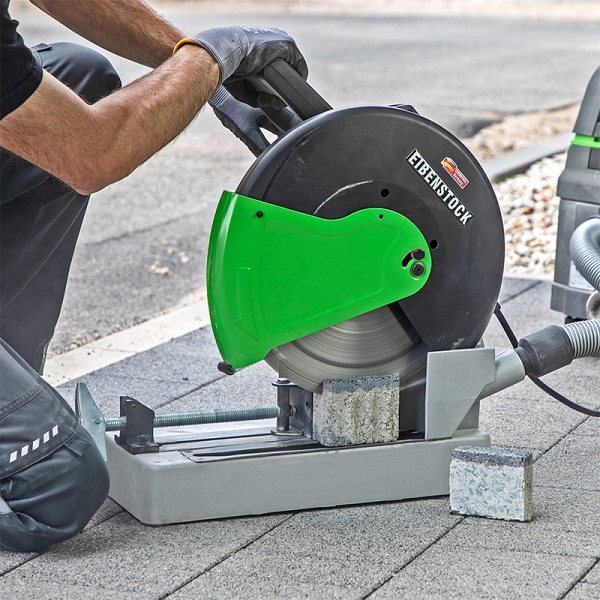 Универсальная дисковая пила Eibenstock EST 350.3 (Айбеншток ЕСТ 350.3) – универсальный, точный и малопыльный станок для сухой резки, пиления, продольной резки стали, пластика и аналогичных материалов; каменных материалов, например, бетона, натурального камня, кирпича; тротуарной плитки; клинкера и т. д. в садоводстве и ландшафтном дизайне, дорожном и тротуарном строительстве.