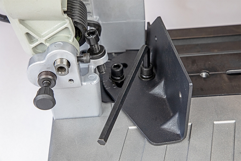 - Угловой упор с плавной регулировкой 0° – 45°: легкая и точная резка под углом