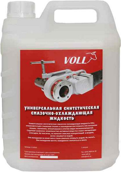 Универсальная синтетическая смазочно-охлаждающая жидкость Voll 5 л (Волл 5 л) предназначена для снижения трения и охлаждения инструмента при нарезании резьбы, сверлении, фрезеровании и прочих видах металлообработки.