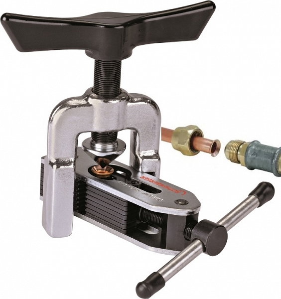 Универсальный развальцовщик Rothenberger EB (Ротенбергер ЕБ) предназначен для вальцовки труб и получения качественных и точных простых бортиков на медных трубах Ø 4 – 16 мм (3/16" – 5/8") под углом 45°. Мобильно используется при монтаже и ремонте систем кондиционирования, в автомобилестроении и т.д.