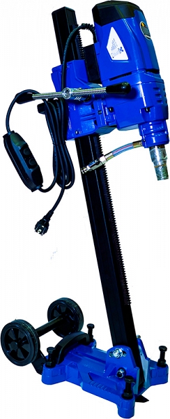 - Транспортировочные колеса позволяют без труда перемещать штатив с уже установленным мотором и коронкой по строительной площадке