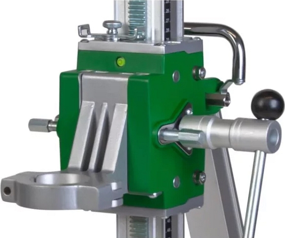 - Возможность работы как со станины, так и "с рук": наличие ворота Ø 60 мм для крепления на станину и пистолетной рукоятки с дополнительной регулируемой передней рукояткой для работы без штатива