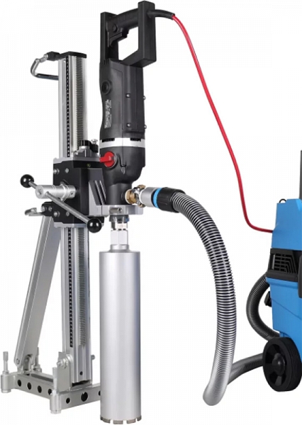 - Мокрое / сухое сверление: в комплекте адаптеры как под стандартное алмазное сверление с водой, так и для работы насухо с использованием пылесоса