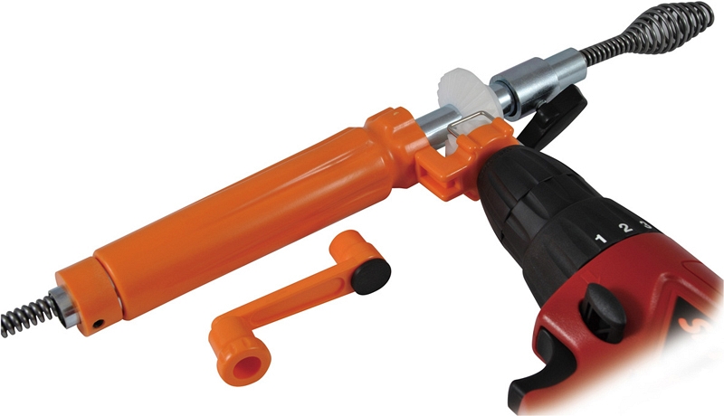 – Позволяет подключать дрель-шуруповерт для вращения прочистной спирали, делая более удобной и эффективной прочистку трубы от засора