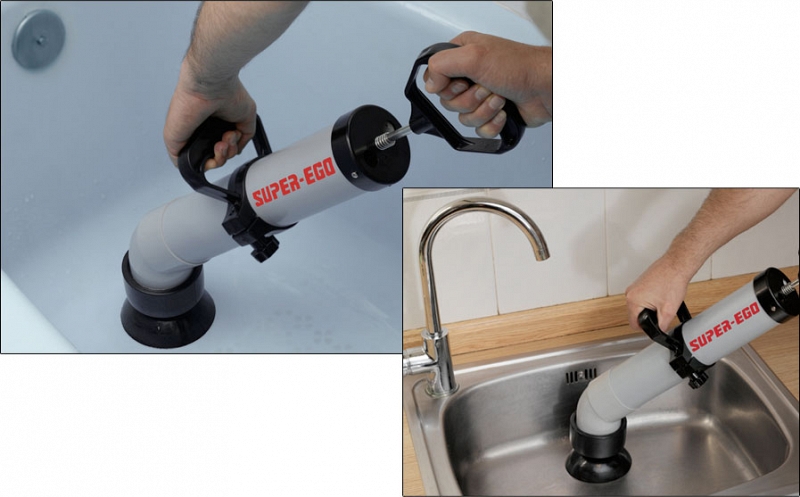 Вантуз для унитаза Super-Ego (Супер-Эго) с 3-мя адаптерами – профессиональный усиленный ручной вантуз насосного типа для прочистки засоров в трубах методом нагнетания / разряжения. Предназначен для быстрого устранения засоров в сливах унитазов, биде, раковин, ванн, душей при помощи короткого и длинного адаптеров.