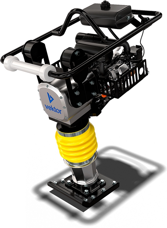 Вибротрамбовка бензиновая Vektor VRG-80H (Вектор ВРГ-80Х) – трамбовка (вибронога) для уплотнения связных глинистых почв, таких, как: глина и суглинок; песка и гравия; при небольших ремонтных работах и в узких ограниченных областях, таких, как: траншеи или фундаменты; работ при жестких неблагоприятных условиях строительного участка.