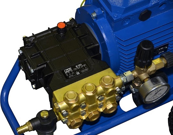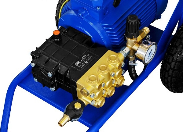 – Вилка и розетка стандарта CEE, удароустойчивы, надежно защищены от попадания влаги при работе в тяжелых условиях IP 67 (дополнительная опция) - Профессиональный надежный трехплунжерный насос высокого давления с керамическими плунжерами Annovi Reverberi (Италия) или Interpump (Италия):