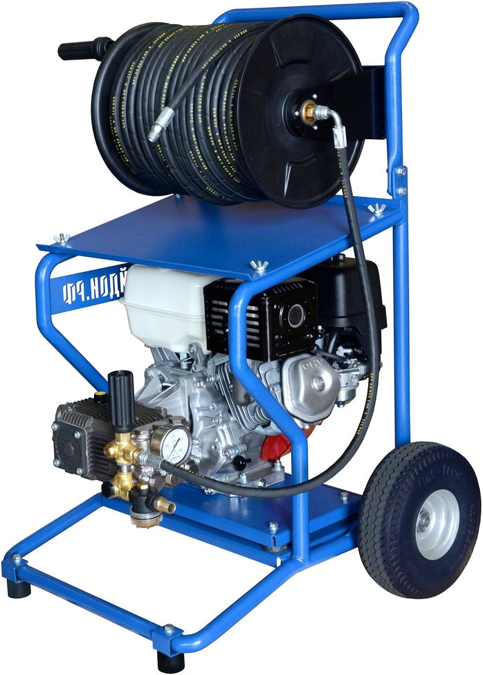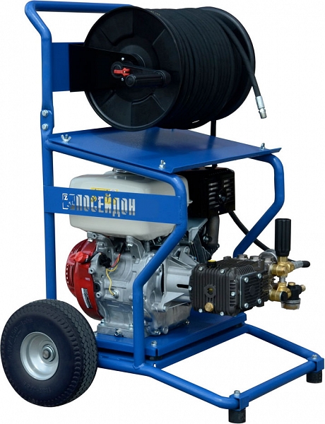 Высоконапорные водоструйные аппараты Посейдон ВНА-Б-200-15 (Poseidon VNA-B-200-15) – профессиональные аппараты высокого давления с оптимальными рабочими характеристиками для высококачественной профессиональной промывки и прочистки канализации и других труб Ø 32 – 200 мм, длиной до 60 м, а также мойки любых поверхностей, транспорта и самоходных машин, полов и открытых площадок, цистерн и емкостей, птичников, ферм, свинокомплексов, на строительных площадках, очистки зданий. Идеально подходит для подрядных организаций, ЖКХ, водоканалов и промышленных предприятий.