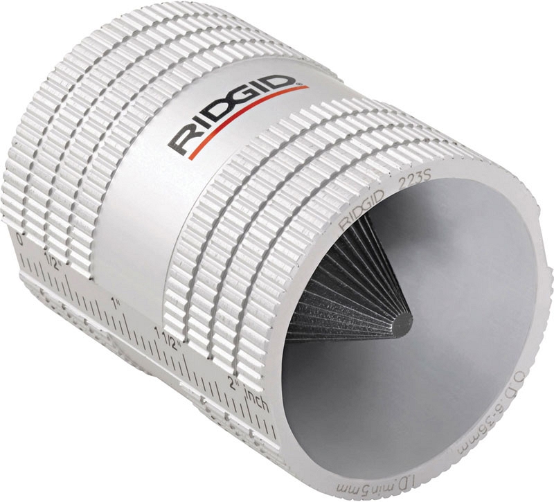 Зенковка коническая для медных и нержавеющих труб Ridgid 223S (Риджид 223С) с твердосплавным конусом предназначена для внутреннего зенкования и наружного удаления заусенцев (снятия фаски) на тонкостенных медных трубах и трубах из нержавеющей стали Ø 6 – 36 мм (1/4" – 1 1/2").
