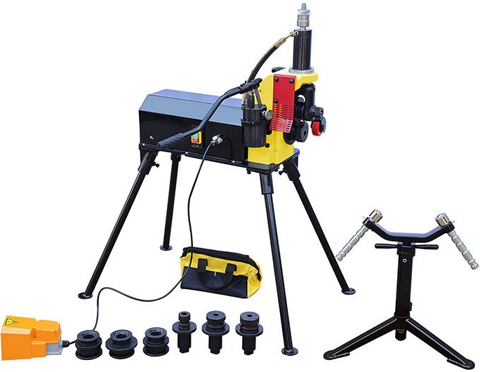 - Мощный двигатель, гидравлический насос подачи, удобный ножной переключатель и прочная подставка для труб для легкого и точного выполнения широкого спектра задач по накатки канавок