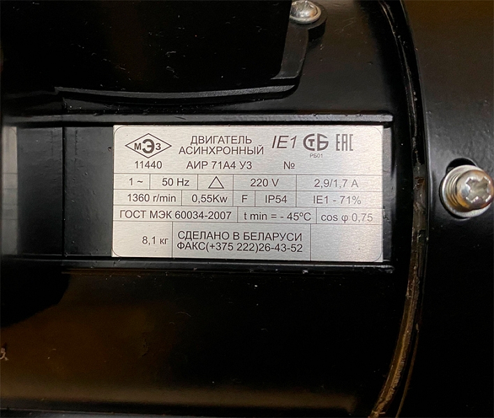 - Асинхронный электрический двигатель 1,1 кВт обеспечивает стабильную и тихую работу