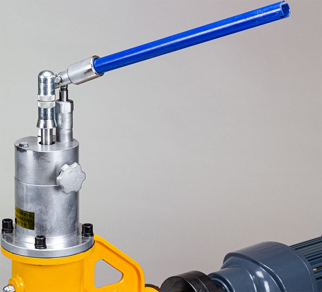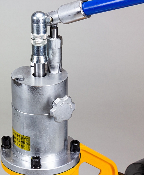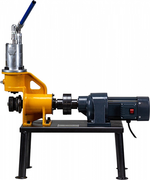 – Гидравлический ручной пресс для подачи накаточного ролика, имеет ручку со шкалой для регулировки глубины накатки желоба