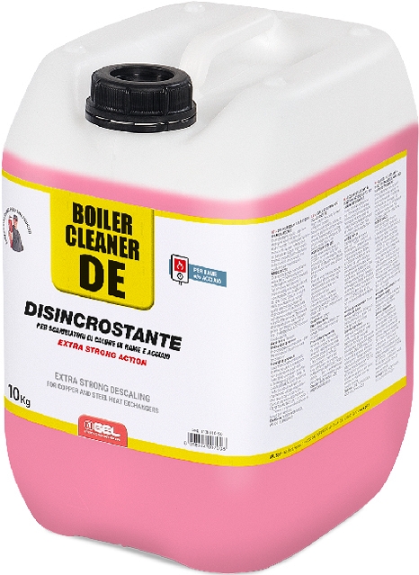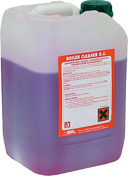 Жидкость для промывки теплообменников Gel Boiler Cleaner DE, 10 кг (Гел Бойлер Клинер ДЕ, 10 kg) – сильное концентрированное жидкое средство на основе неорганических кислот со специальными ингибиторами от коррозии, смачивающими агентами, анти-пенообразователями и индикаторами силы кислоты, с сильной реакцией для удаления известковой накипи и коррозии для медных и/или стальных систем отопления, теплообменников, котлов, бойлеров, для использования с промывочными насосами Boy C и Long Life Superflush.